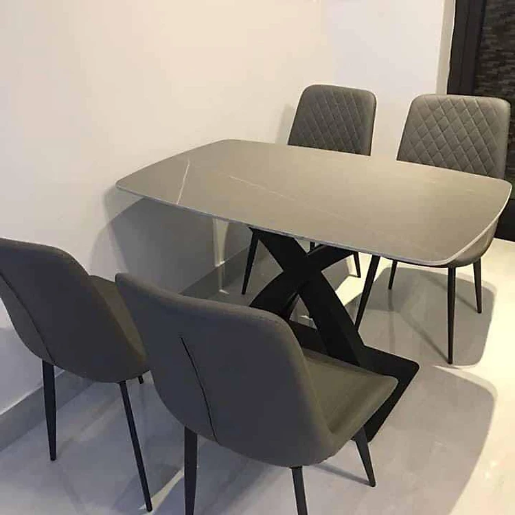 Bàn ăn mặt đá phiến chân x cong kết hợp ghế Nelson trám