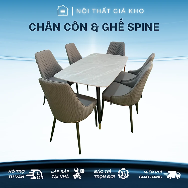 Bàn ăn mặt đá phiến kết hợp ghế Spine - bộ bàn ăn mặt đá 4 ghế, 6 ghế, 8 ghế