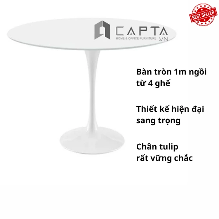 Bàn ăn Tulip tròn gỗ sơn màu trắng 1m TE TULIP 2-10W Chân thép sơn tĩnh điện đế to vững chắc kiên cố nhập khẩu hiện đại sang trọng CAPTA