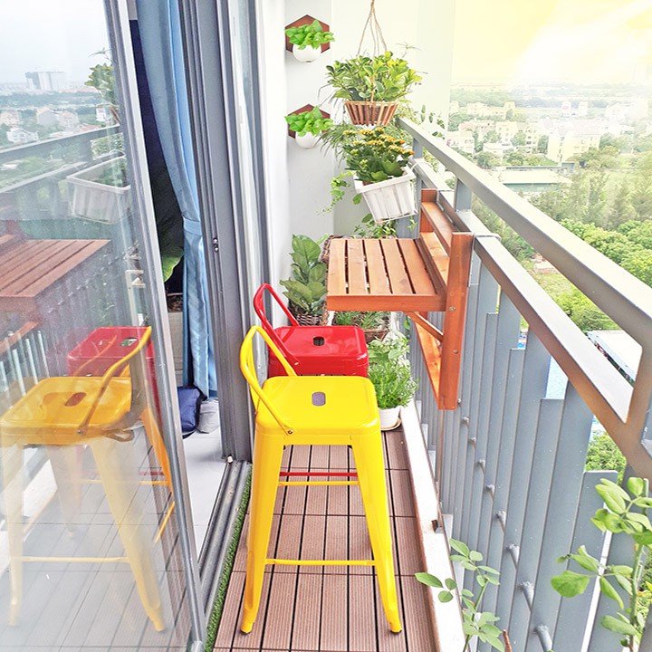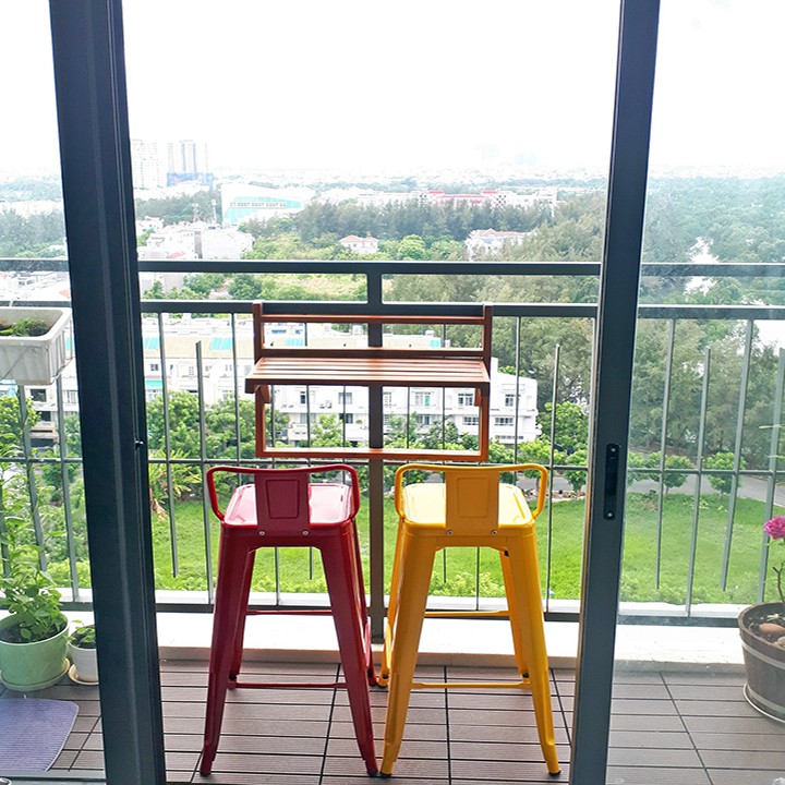 - Khi không sử dụng Bàn treo ban công gấp gọn gỗ Tràm bạn có thể dễ dàng gấp lại, không gian ban công gần như được nới rộng đáng kể, và đặc biệt không che mất tầm nhìn từ trong nhà.
