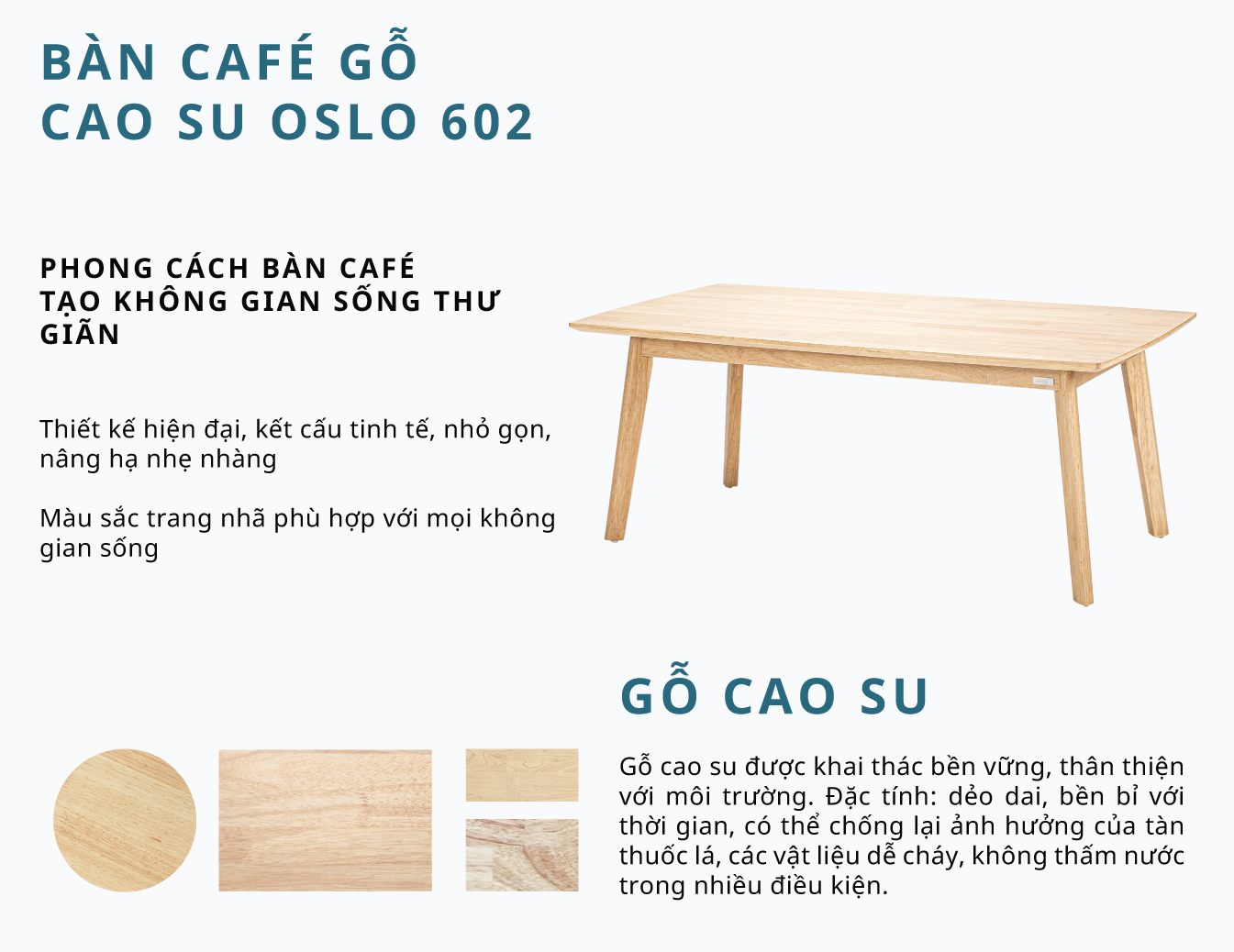 Bàn Sofa - Bàn Cafe – Bàn Trà Gỗ Cao Su MOHO OSLO 602 Màu Gỗ Tự Nhiên Hình Chữ Nhật