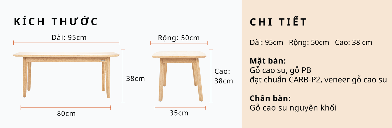 Mặt bàn: Gỗ PB đạt chuẩn CARB-P2 & Veneer Cao su