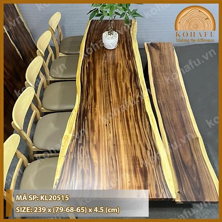 Bàn Cafe Dài 2.39m Gỗ Me Tây Nguyên Tấm Tự Nhiên