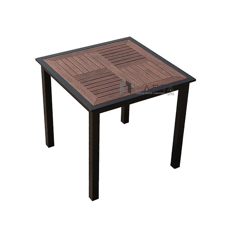 Bàn cafe vuông 80cm ngoài trời TE2033-80A Nội thất Capta Bàn ăn nhà hàng sân vườn nhỏ gọn mặt gỗ nhựa chống thấm chân nhôm sơn tĩnh điện