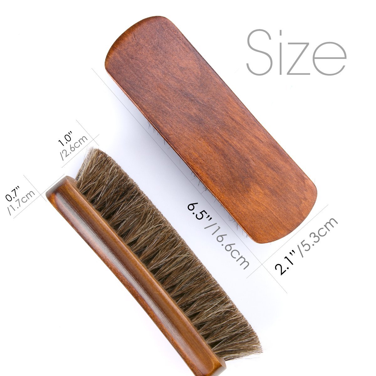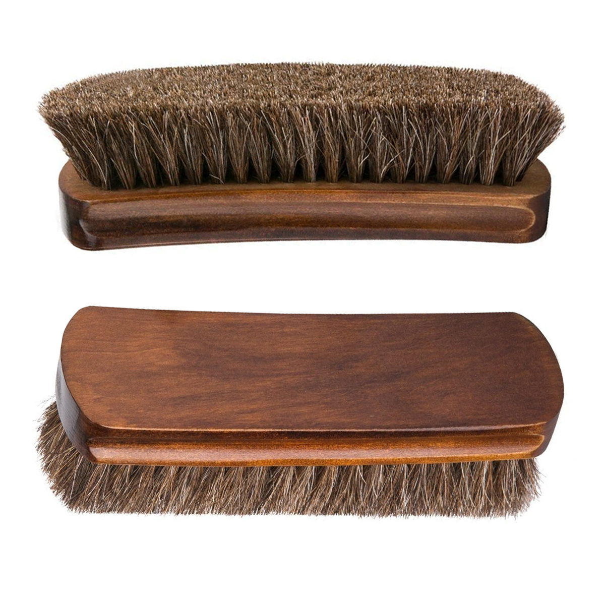 Bàn chải đánh giày chất liệu lông ngựa cao cấp, giúp loại sạch các vết bẩn và bụi bám trên bề mặt da trả lại vẻ sạch bóng như mới cho bề mặt.