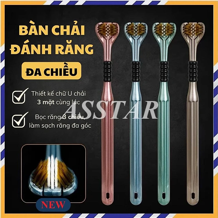 Bàn Chải Đánh Răng 3 Mặt, Bàn Chải Đánh Răng Đa Chiều Làm Sạch Đồng Thời Cả 3 Bề Mặt Của Răng, Lông Mềm Mượt