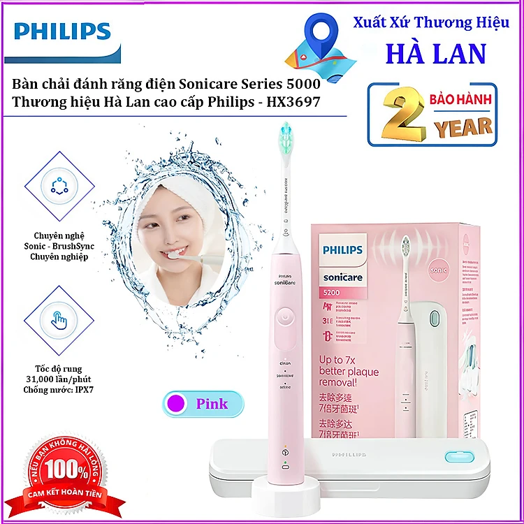 Bàn chải đánh răng điện Philips Sonicare Series 5200. Thương hiệu Hà Lan cao cấp Philips - HX3697. Hàng chính hãng