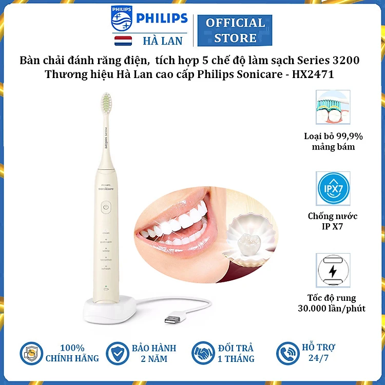 Bàn chải đánh răng điện, tích hợp 5 chế độ làm sạch Series 3200 thương hiệu cao cấp Philips Sonicare HX2471 - Hàng Chính Hãng