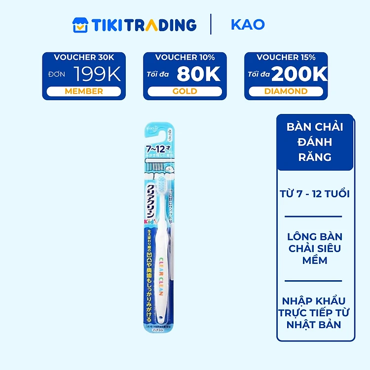 Bàn chải đánh răng KAO trẻ em màu xanh (Từ 7 - 12 tuổi)