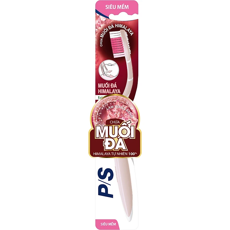 - Bàn Chải Đánh Răng P/S Muối Đá Himalaya có lông bàn chải được phủ muối muối đá Himalaya tự nhiên 100%, giúp quét sạch vi khuẩn và làm trắng răng một cách tự nhiên.