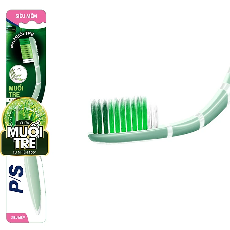 - Bàn Chải Đánh Răng P/S Muối Tre có lông bàn chải được phủ muối tre tự nhiên 100%, giúp quét sạch vi khuẩn và làm trắng tự nhiên.