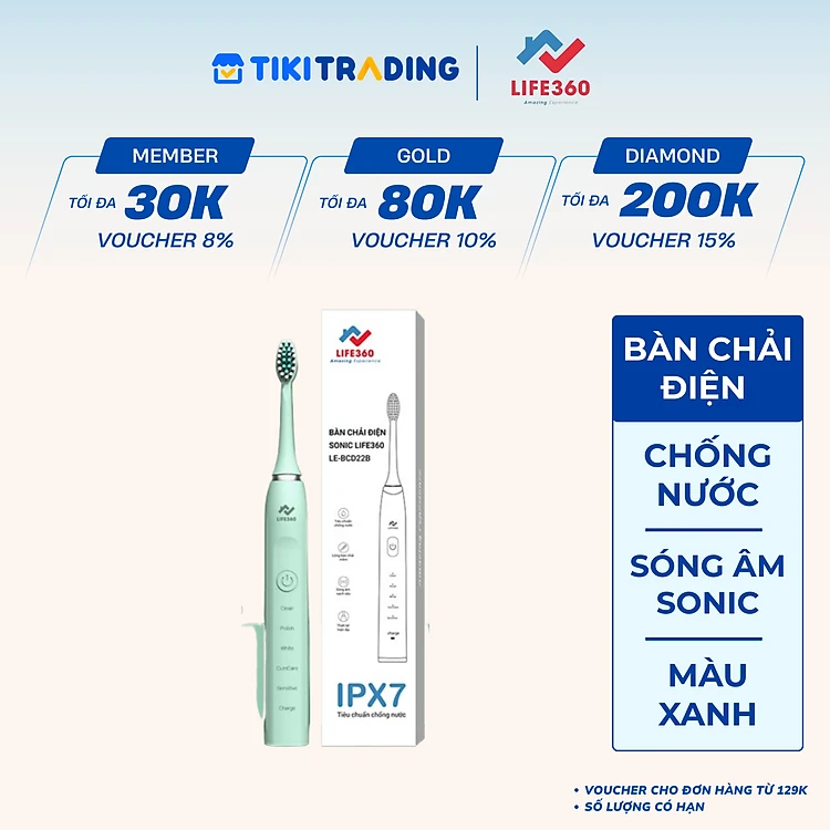 Bàn Chải Điện Sonic Life360 LE-BCD22B - Chải Sạch Mảng Bám Tới 10 Lần, Chống Nước IPX7