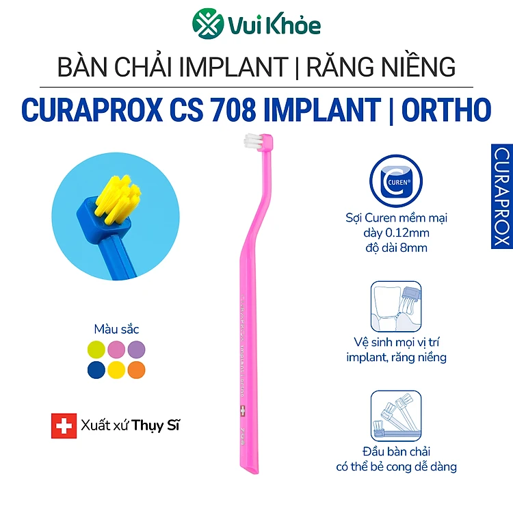 Bàn chải implant, răng niềng Curaprox CS 708 Implant, Ortho | Vỉ 1 cây | Mã SP 73310021