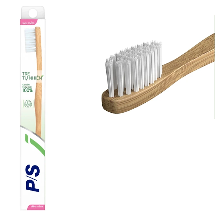 Bàn chải đánh răng P/S Tre Tự Nhiên với cán cầm bằng tre tự nhiên 100% và lông chải siêu mềm chải sạch răng và nướu
