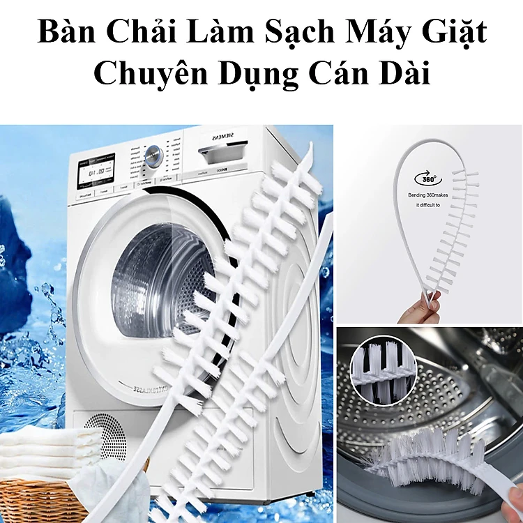 Bàn Chải Vệ Sinh Máy Giặt Tay Cầm Dài Bằng Nhựa Có Thể Gập Lại Đa Năng (Trắng)