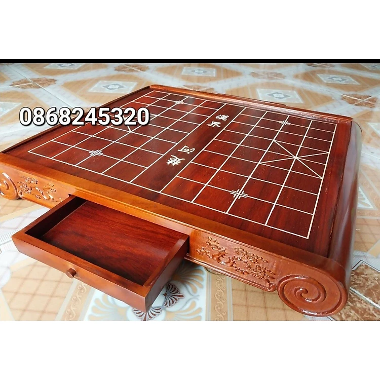 Bàn cờ tướng ngăn kéo bằng gỗ hương kt 55×60×8cm