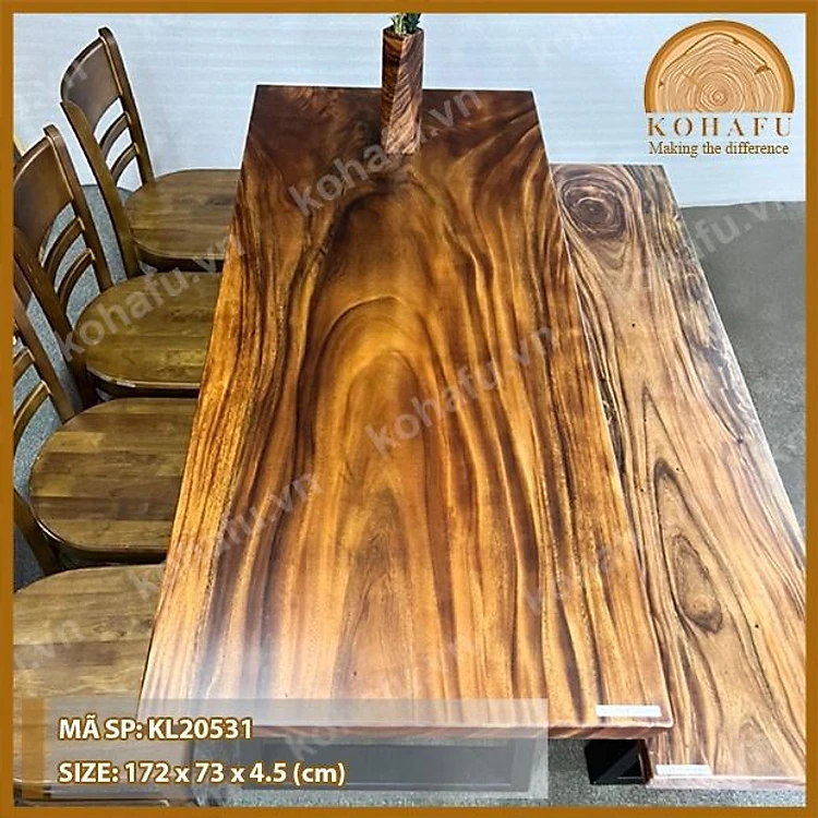 Bàn Dài Gỗ Me Tây Nguyên Tấm 1.72m - KL20531