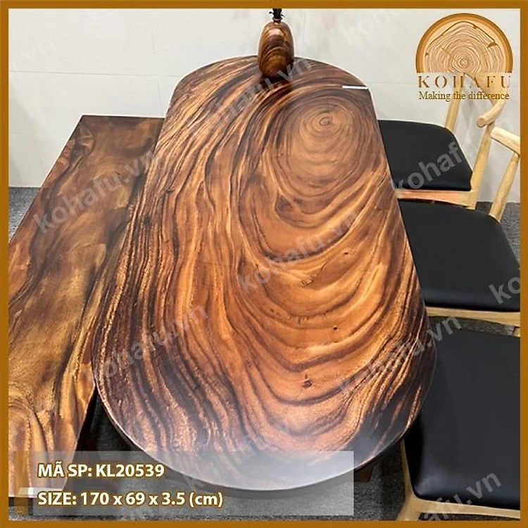 [KL20539] Bàn Dài Oval Me Tây Nguyên Tấm Siêu Vân