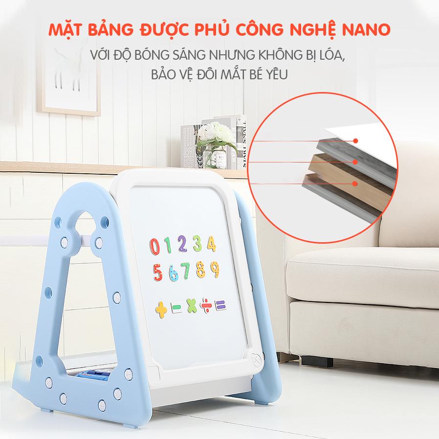 - Mặt bảng được phủ Nano, với độ mịn cao, sáng bóng nhưng chống lóa, bề mặt trắng giúp bảo vệ thị lực của bé