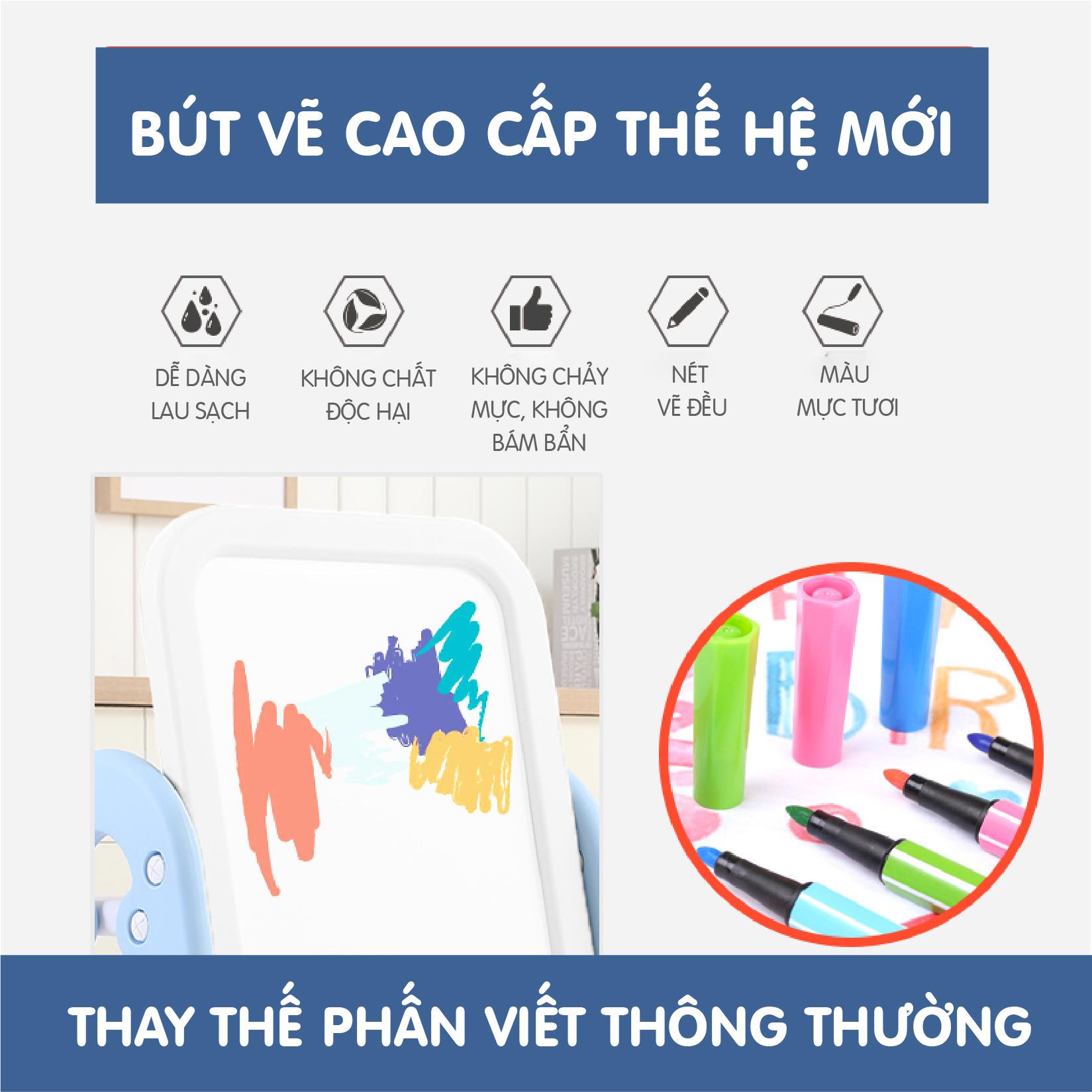 - Bút vẽ cao cấp thế hệ mới: dễ dàng lau sạch, không chứa chất độc hại, không chảy mực, không bán bẩn, nét vẽ đều, màu mực tươi.