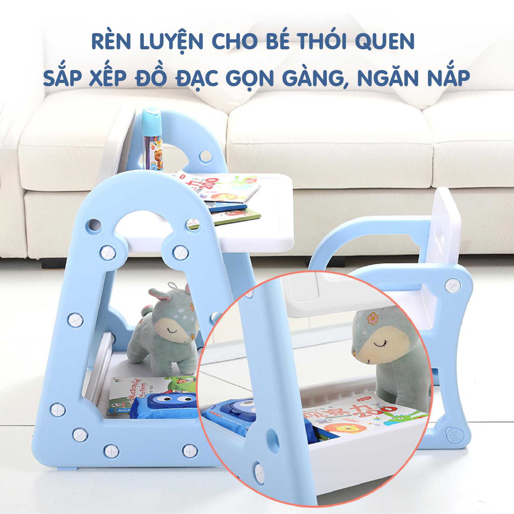 BÀN GHẾ ĐA CHỨC NĂNG 2IN1, CÓ THỂ LÀM BÀN, BẢNG VẼ CHO BÉ TỪ 1-8 TUỔI HOLLA, MẶT CHỐNG LÓA MỎI MẮT AN TOÀN CHO BÉ