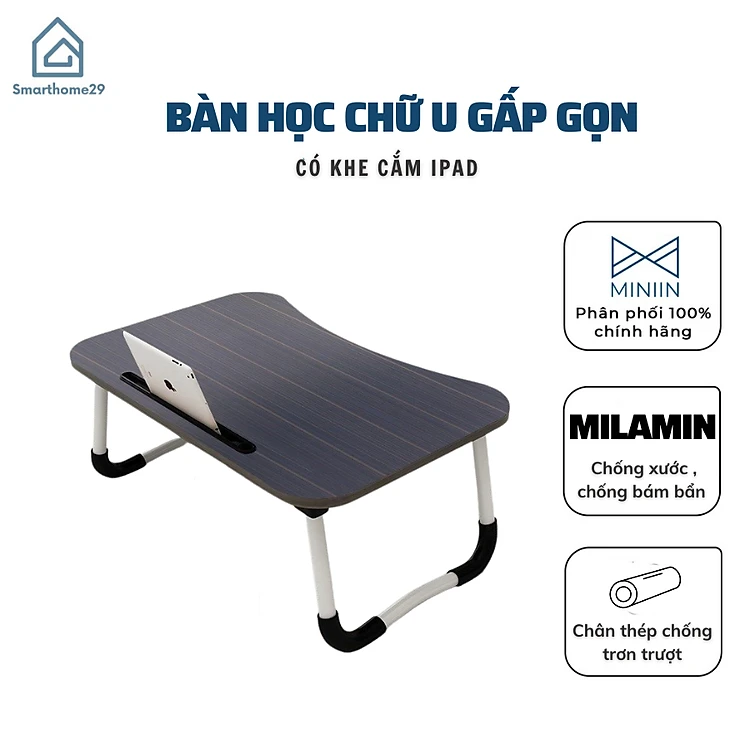 Bàn Học, Làm Việc Gấp Gọn Đa Năng Thông Minh Phù Hợp Với Mọi Không Gian Có Khe Cắm Ipad, Điện Thoại- Hàng Chính Hãng MINIIN