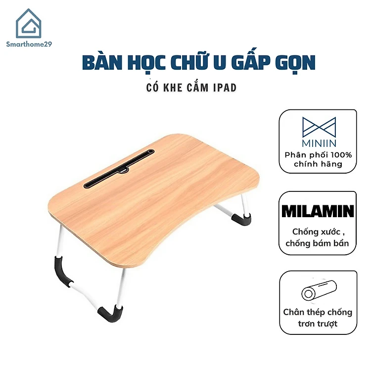 Bàn Học, Làm Việc Gấp Gọn Đa Năng Thông Minh Phù Hợp Với Mọi Không Gian Có Khe Cắm Ipad, Điện Thoại- Hàng Chính Hãng MINIIN
