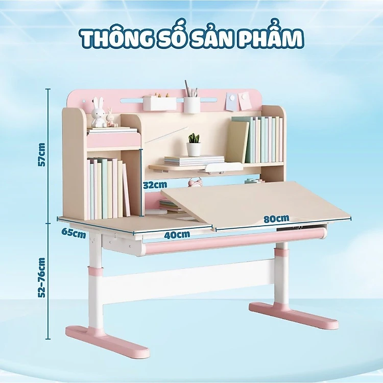 Bàn học sinh thông minh đa năng, nâng hạ tay quay, điều chỉnh góc nghiêng, chống cận Juno sofa CTIRPro100 kèm đèn ngang 120cm