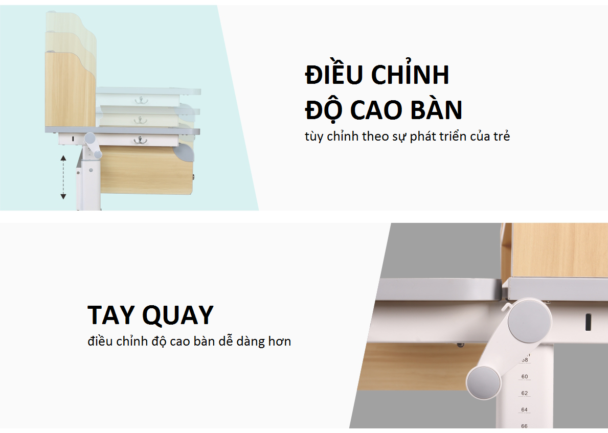 Dễ dàng thay đổi chiều cao phù hợp cho trẻ từ mẫu giáo đến đại học.