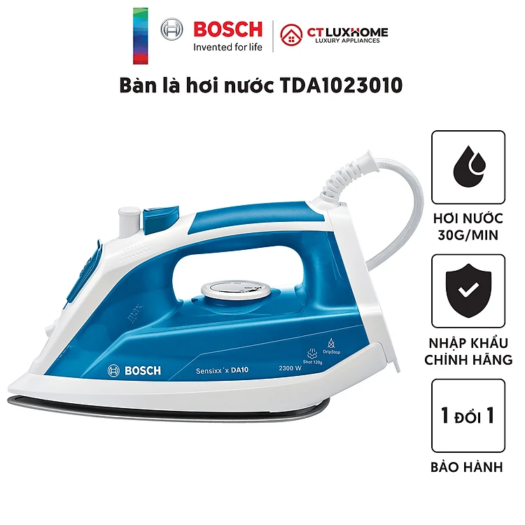 Bàn là hơi nước, Bàn ủi hơi nước Bosch TDA1023010 2300W, 50/60Hz, Hơi nước 30g/phút [Hàng chính hãng]