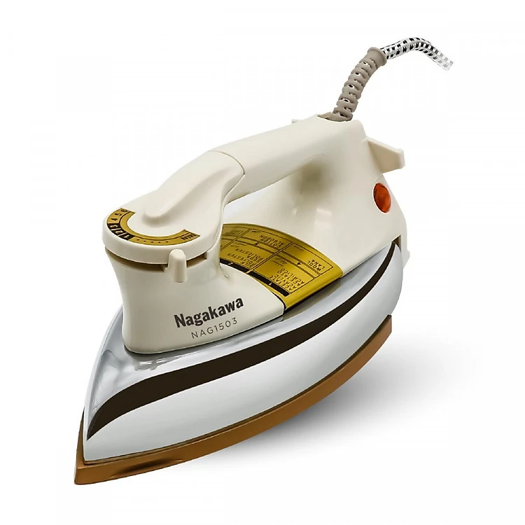 Bàn là khô Nagakawa NAG1503 được thiết kế hiện đại, tiện dụng, núm điều chỉnh nhiệt trên thân bàn là tiện lợi hơn trong khi là. Dây nguồn 100% đồng nguyên chất bền hơn, dẫn điện, nhiệt tốt, có khớp dây có thể xoay 360 độ giúp dễ dàng xoay trở bàn là, không gây vướng khi là. Đặc biệt, bàn là có chế độ cảm biến nhiệt đóng ngắt kiểm soát nhiệt độ bàn là ở mức an toàn, ngắt sau 1 phút nếu bàn là được để yên không chuyển động ở vị trí ủi hoặc vị trí nằm nghiêng sang cạnh bên, hoặc sau 10 phút nếu để ở vị trí dựng thẳng đứng.