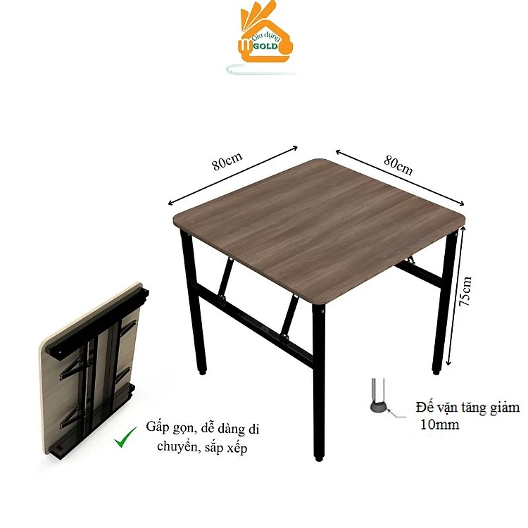 Bàn Làm Việc, Bàn Ăn, Bàn Học Gấp Gọn Chân Sắt Gấp Gọn Mặt Gỗ MDF Vuông 80cm