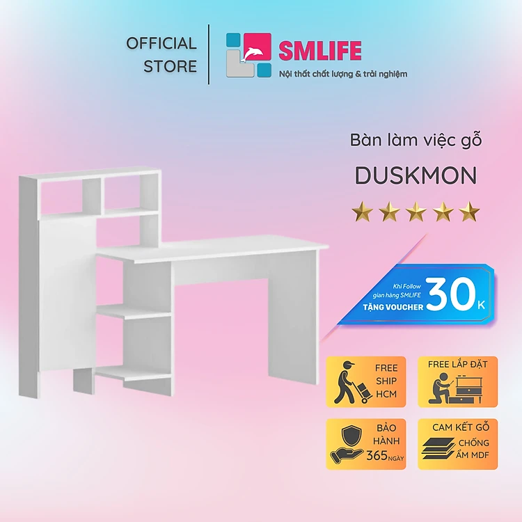 Bàn liền giá sách đa dạng thiết kế đẹp SMLIFE Duskmon