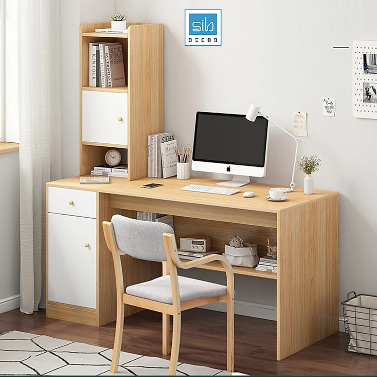 - Bàn làm việc được thiết kế kèm tủ sách 2 trong 1.