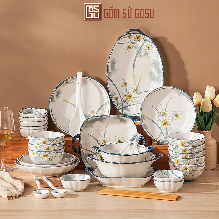 Bán Lẻ Bát Đĩa Hoa Thuỷ Tinh Viền Xanh Thương Hiệu Gosu, Sử Dụng Được Cho Lò Vi Sóng, Máy Rửa Bát