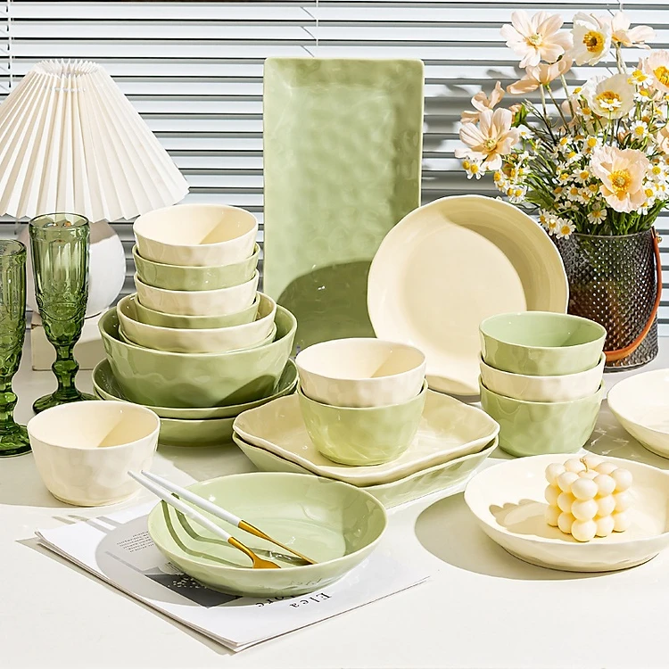 Bán Lẻ Bộ Bát Đĩa Chén Đĩa Gosu Phong Cách Châu Âu Màu Kem Bơ Sang Trọng, Men Sáng Bóng