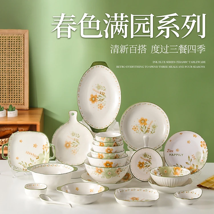 Bán Lẻ Bộ Bát Đĩa Chén Dĩa Hoa Lá Vàng Thương Hiệu Gosu Men Bóng Mịn Đẹp