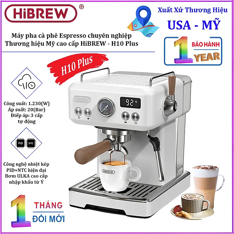 Bản nâng cấp - Máy pha cà phê Espresso chuyên nghiệp, thương hiệu Mỹ cao cấp HiBREW - H10 Plus. Hàng chính hãng