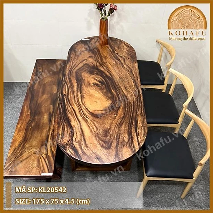 BÀN OVAL GỖ ME TÂY NGUYÊN TẤM SIÊU HỆ VÂN