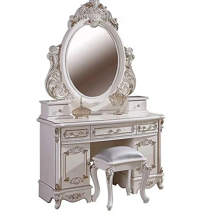 Bàn Phấn Tân Cổ Điển Màu Trắng Tundo HHP-BP010-12 Cao Cấp