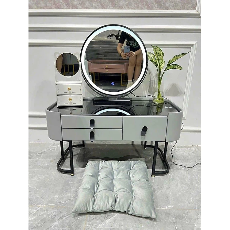 Bàn phấn trang điểm ngồi bệt Juno Sofa kết hợp loa và sạc, đặc biệt gương led màu hiện đại