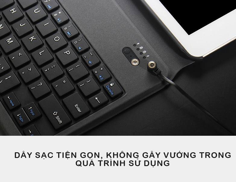 Bàn phím Bluetooth cho iPad Mini 5 kèm bao da Promax Mini 5 Cover còn có dây sạc tiện gọn, không gây vướng trong quá trình sử dụng. Ngoài ra sạc còn tích hợp sạc nam châm giúp đảm bảo sạc không bị rơi rớt.