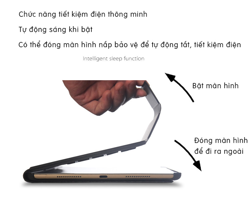 - Có thêm tính năng tự động ngủ sau 15 phút khi không sử dụng giúp tiết kiệm điện năng và có thể được kích hoạt bằng cách mở bao da, cũng như có thể tắt bàn phím bằng cách gấp bao da.