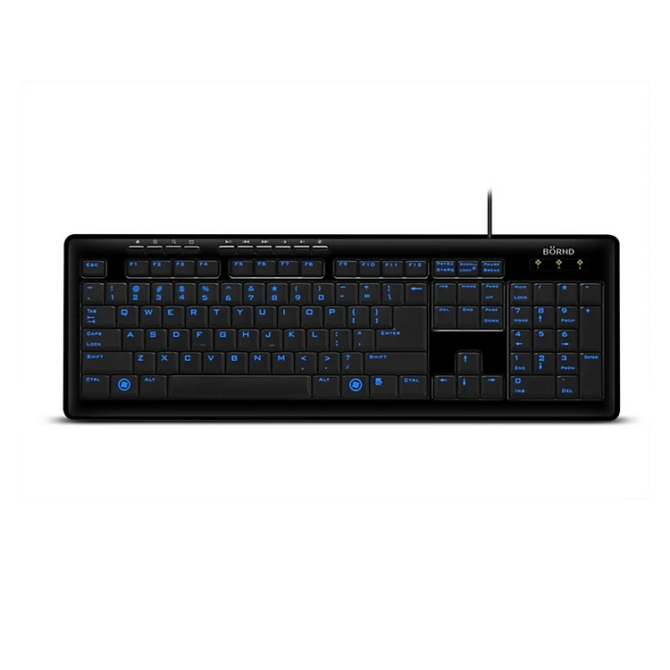 Bàn Phím Bornd Backlit L303 thiết kế tinh tế, công nghệ backlit siêu mỏng và trọng lượng siêu nhẹ, bao gồm bàn phím số và phím ký tự, các phím đàn hồi tốt mọi thao tác mượt mà và thoải mái. Phím bấm êm ái không hề phát ra tiếng động khi nhấn phím. Đặc biệt trong bóng tối bạn vẫn có thể sử dụng bàn phím mà không hề gặp bất kỳ khó khăn nào vì được tích hợp đèn led phát sáng và bạn có thể tùy chọn màu phát sáng.