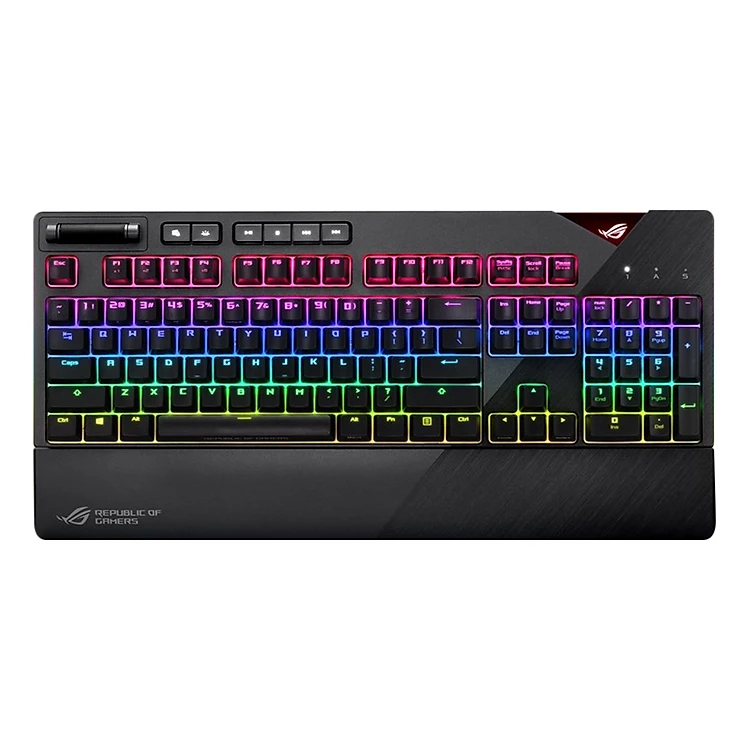 Bàn Phím Chơi Game Rog Asus Strix Flare Rgb Aura Sync USB - Hàng Chính Hãng cho bạn cảm nhận sự hài lòng mỗi lần nhấn phím nhờ các switch Cherry MX nổi tiếng thế giới. Tận hưởng sự tiếp cận nhanh đến các phím đa phương tiện chuyên dụng ở phía trên bên trái trong khi chơi game. Và trải nghiệm một mức độ cá nhân hoá tuyệt vời với biểu tượng tùy chỉnh được chiếu sáng bằng công nghệ ánh sáng Rumin Aura Sync. Thể hiện năng khiếu chơi game của bạn khi bạn thống trị chiến trường.