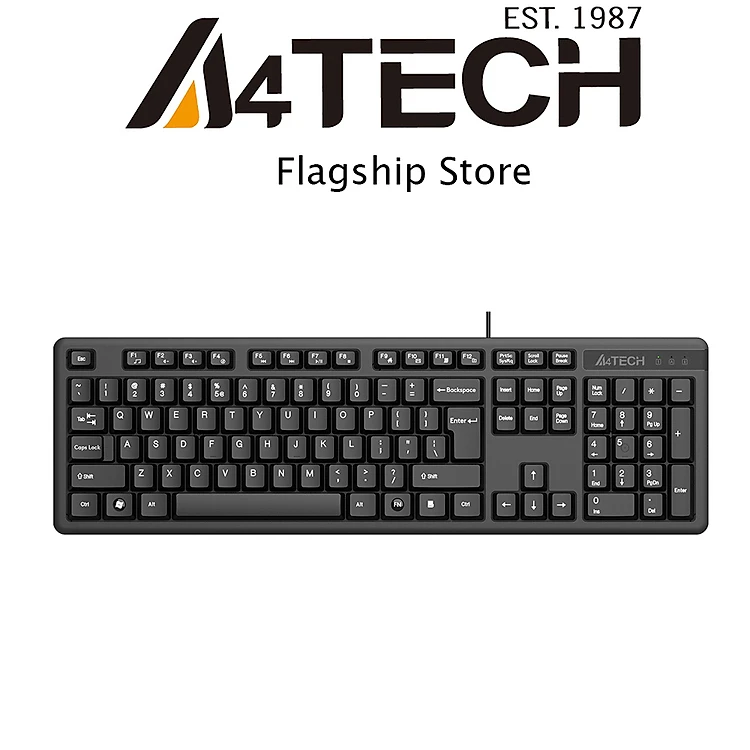 Bàn phím có dây A4TECH KK-3 khắc bằng Laser giúp cho chữ cái hoặc ký tự luôn mới ngay cả khi bạn sử dụng lâu dài. Chống rỉ nước dành cho văn phòng, giải trí.