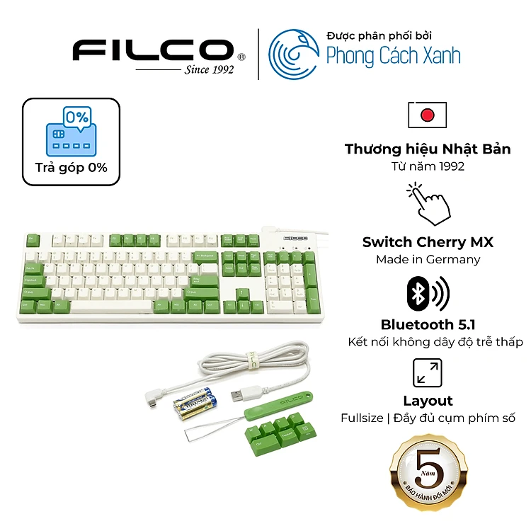 Bàn phím cơ Filco Majestouch Convertible 3X Matcha - Fullsize - Hàng Chính Hãng
