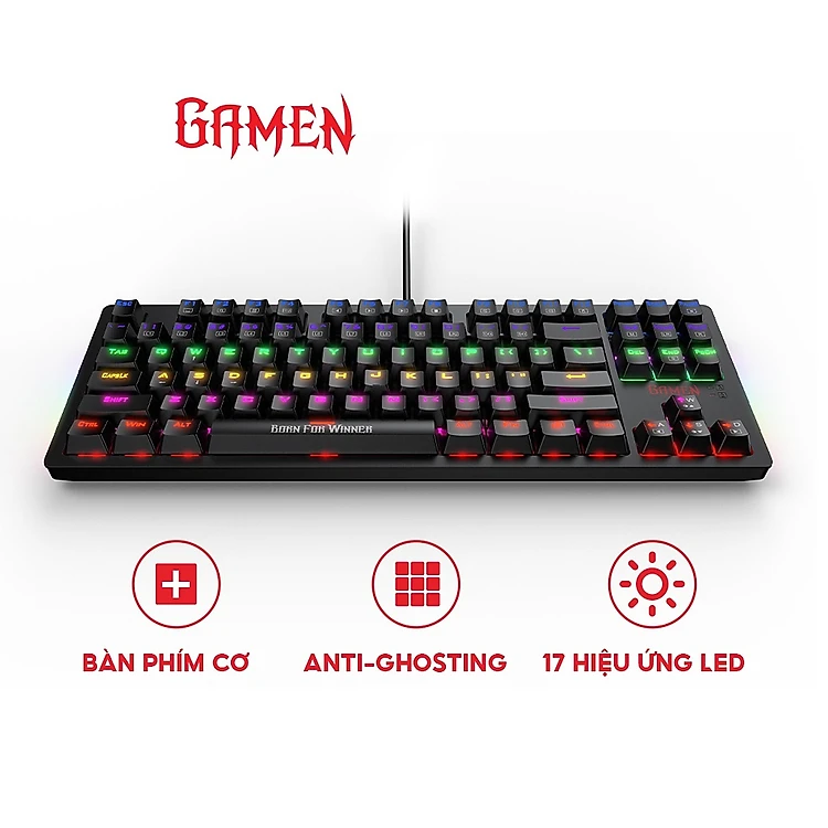 Bàn phím gaming Gamen Titan II bàn phím cơ chơi game đèn LED RGB cho máy tính, laptop