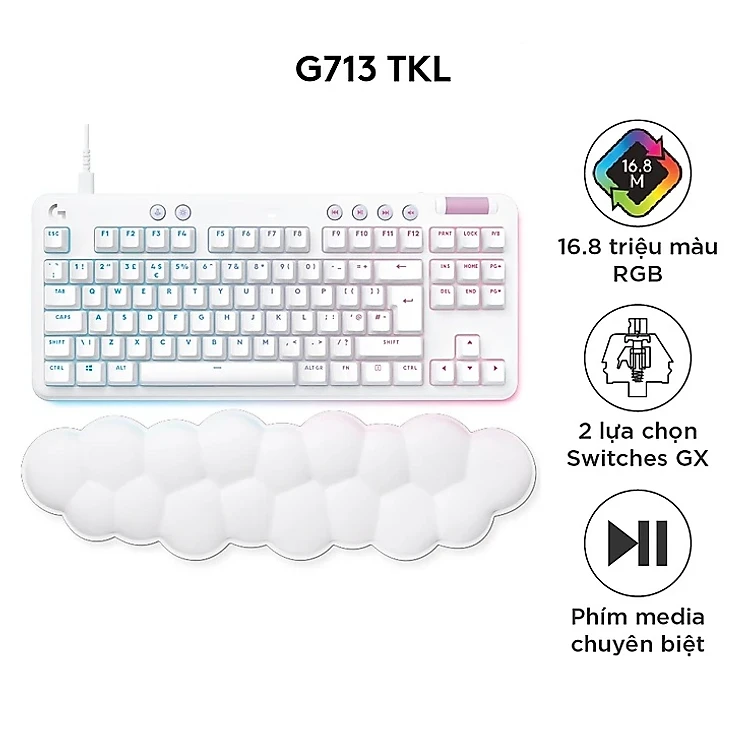 Bàn phím cơ gaming có dây Logitech G713 TKL - RGB, tương thích PC, Mac - Hàng Chính Hãng