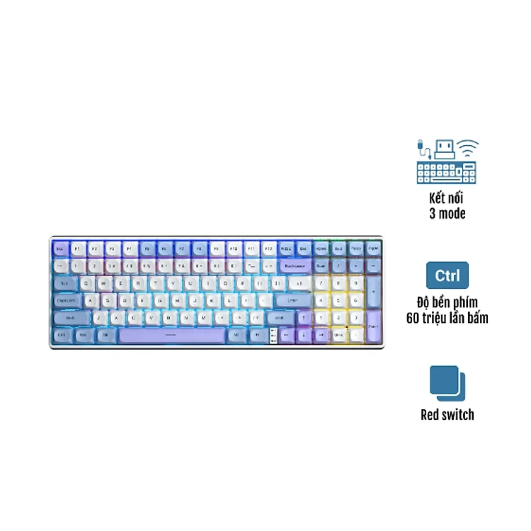 Bàn phím cơ Gaming không dây AULA S100 PRO 3 MODE (Phiên bản Xanh dương+trắng+tím/ Red switch) - Hàng Chính Hãng